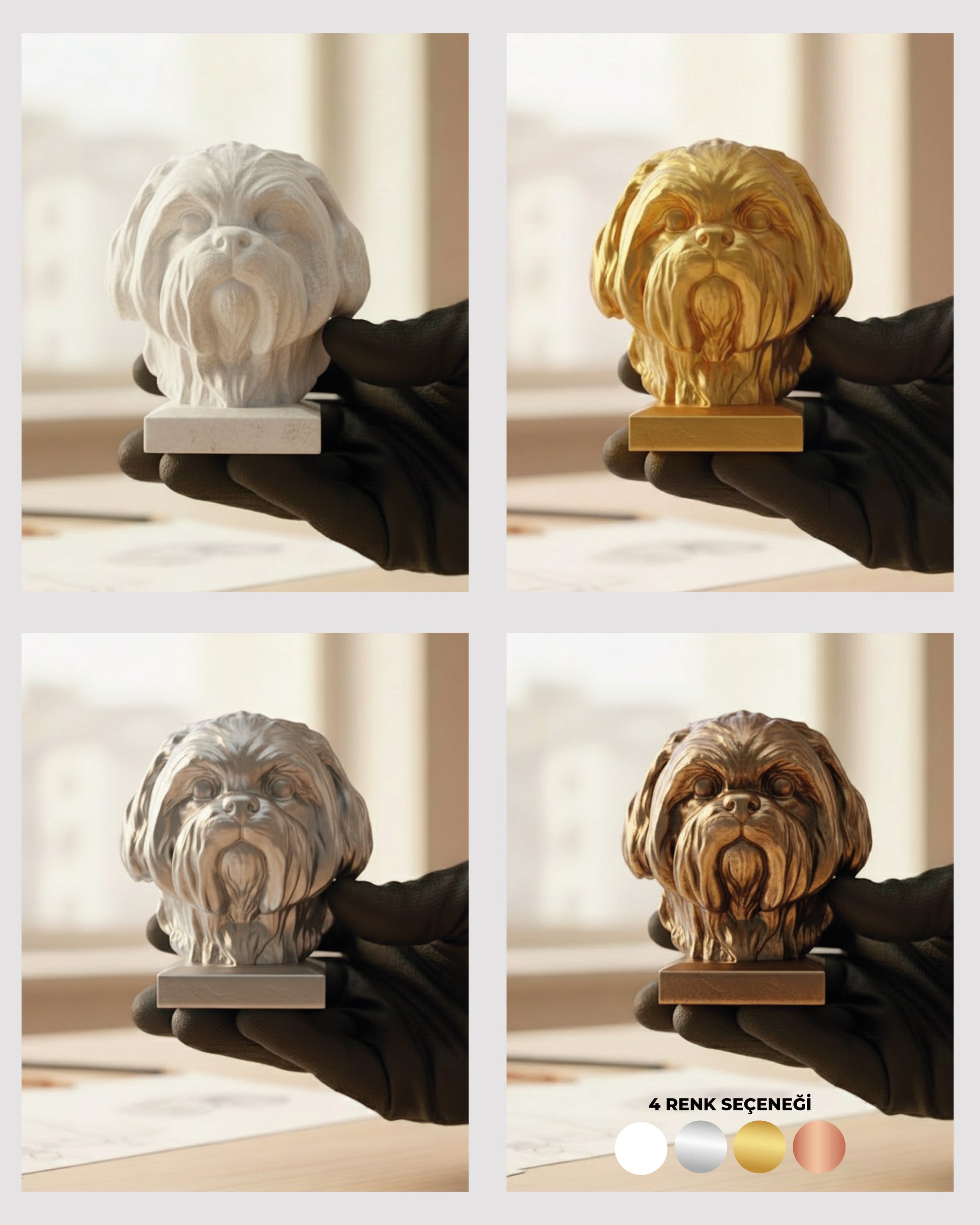 Toplam 79 köpek ırkı arasından istediğini seçebilir, büstü beyaz, gümüş, altın veya bronz renk seçenekleriyle sipariş verebilirsin.